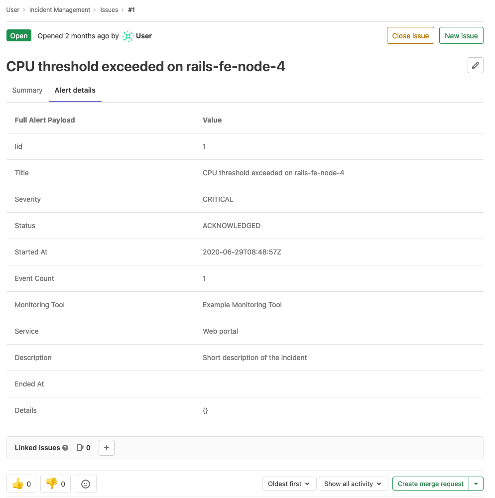 When you make changes to an incident, GitLab creates system notes and displays them below the summary.
