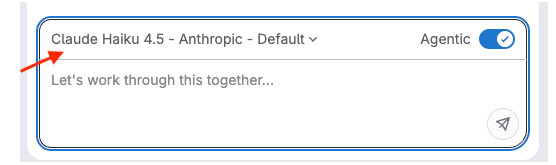 On the bottom of the panel, near the chat text box, you can choose the large language model to use. For this tutorial, you can keep the default selection.