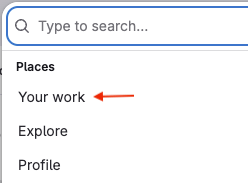 In the left sidebar, you can also choose a more focused view into the areas you have access to. Select Search or go to and then select Your work.